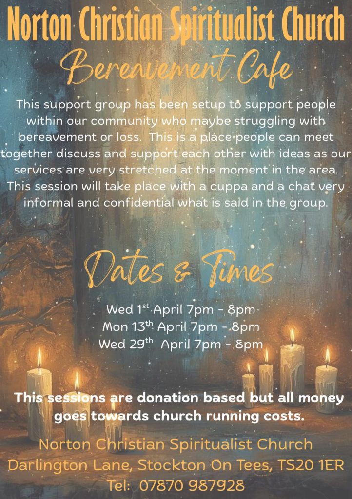 | Bereavement Support Group Cafe | Wed 22nd – 7pm | Church |
