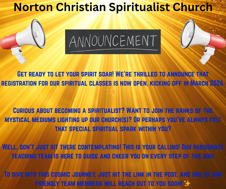 Most churches within our area offer 8 week courses but we believe at Norton we should invest time in our students by doing the training over a period of time. This class normally runs from March till September where you will get a good understanding of what you need to know and the knowledge of spiritualism.